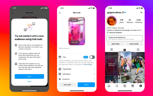 Reels için hayata geçirilen “deneme” özelliği, içerik üreticilerinin, takipçilerinden gelebilecek tepkilere dair endişelenmeksizin yeni fikirlerini deneyebilmelerini ve neyin en iyi performansı sergilediğini gözlemleyebilmelerini sağlıyor. Bu özelliğin kullanıldığı bir Reels videosu, paylaşımı gerçekleştiren hesabı takip etmeyenlere gösteriliyor. Eğer içerik üreticisi videonun performansını olumlu değerlendirirse, onu kendi takipçileriyle paylaşabiliyor.