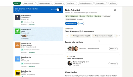 Bu değişiklikler ile birlikte LinkedIn, iş aramanın sıkıcı kısmı olan ön yazı oluşturma, CV yazmave özelleştirme gibi kısımları daha kolay hâle getirecek. Yeni sistemde ayrıca komutlar vererek, sohbet eder gibi iş aramak da mümkün olacak. Örneğin "Bana uzaktan çalışabileceğim, aylık maaşı 200 bin lira olan bir iş bul." dediğimizde bize uygun alternatifler buluyor.